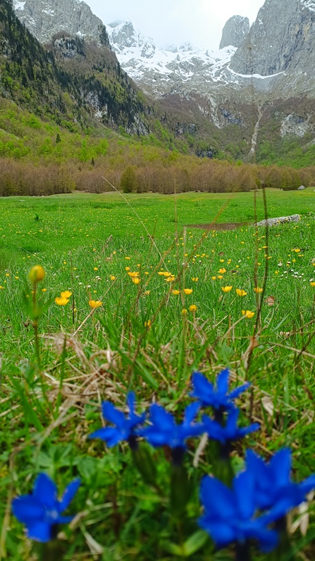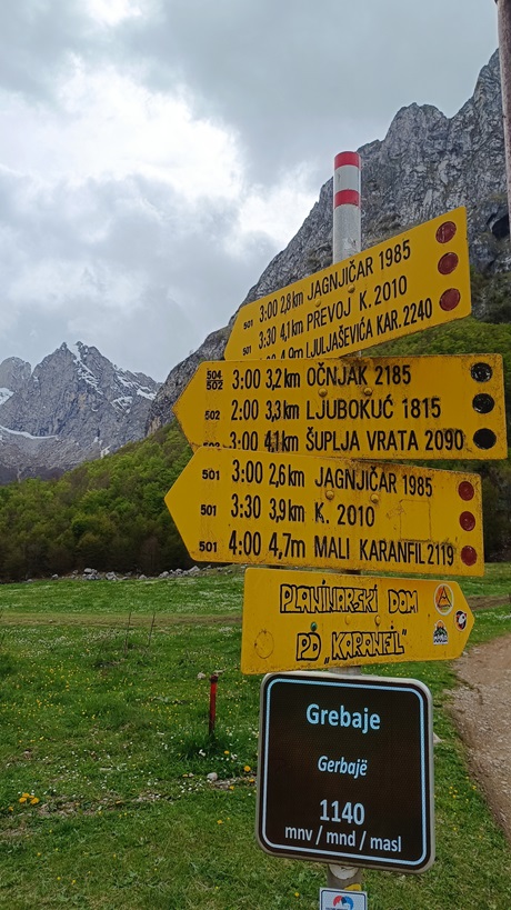 Nasz kolejny kierunek w Górach Przeklętych zgodnie ze wskazówkami panów z informacji turystycznej to Dolina Grebaje. Zanim dotarliśmy na miejsce startu musieliśmy uiścić opłatę w wysokości 3euro za wstęp do Parku Narodowego Prokletije. W dolinie Grbaja jest bardzo dużo znaków na szlaki w różne kierunki. My wybrałyśmy krótki szlak bez wzniesień do podnóża gór w głąb doliny. Łąki w dolinie są usłane różnymi kolorowymi kwiatami i ziołami, których zapach unosi się w powietrzu. Wysokie góry otaczają nas z każdej strony, jakby chciały na zawsze nas tu zatrzymać, wrażenie jest nie do opisania. Na końcu szlaku znajdujemy ławki i korzystamy z nich by chłonąc piękno Gór Przeklętych.