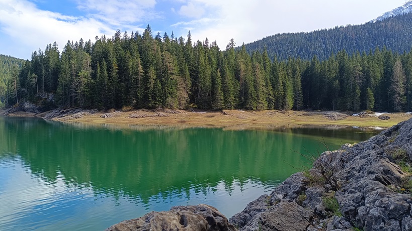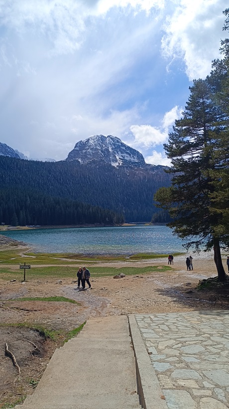Docieramy do Żabljak - celem jest Crno Jezero. Zostawiamy pojazd przed wejściem do parku - uiszczamy opłatę 3euro od osoby. Nad jezioro prowadzi droga asfaltowa z pasem dla pieszych, wzdłuż której rosną majestatyczne sosny - piękne wprowadzenie do panoramy jeziora na tle gór - Bobotov Kuk (2523 m). Dookoła jeziora prowadzi 5km przyrodniczy szlak pieszy, w pewnym momencie wznosi się dość wysoko, ale jest osiągalny dla każdej sprawnej osoby. Na trasie spotykamy tylko dwie pary, można usiąść gdziekolwiek i pomedytować. Po spacerze można wypić kawę i coś zjeść, jest tu restauracja.