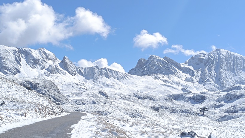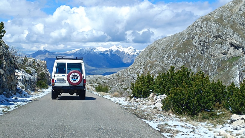 Pivsko-Zabljak droga P14, to trasa panoramiczna około 57km, czas przejazdu serpentynami wynosi ponad 1h (może być długo dłużej jak nie oderwiesz wzroku od widoków). Po kilku kilometrach krajobraz dramatycznie się zmienia. Durmitor skąpany jest wciąż w białym puchu (jest to ostatni tydzień kwietnia 2024). Widok jest tak niesamowity, aż trudno uwierzyć, że jest prawdziwy. Zdjęcia nie oddają i tak tego piękna, a zatrzymywałyśmy się co kawałek. Przejazd przez Durmitor do Zabljak niestety okazuje się niemożliwy, 3 kilometry przed końcem szlaku śnieg sięga kolan i kilka aut przed nami nie może się z niego wydostać - my zawracamy w asyście lokalnej firmy oferującej rafting - Panowie bardzo mili i pomocni! Żeby dostać się do Zabljak musimy nadrobić ponad 100km, zamiast 3km - mimo wszystko warto było.