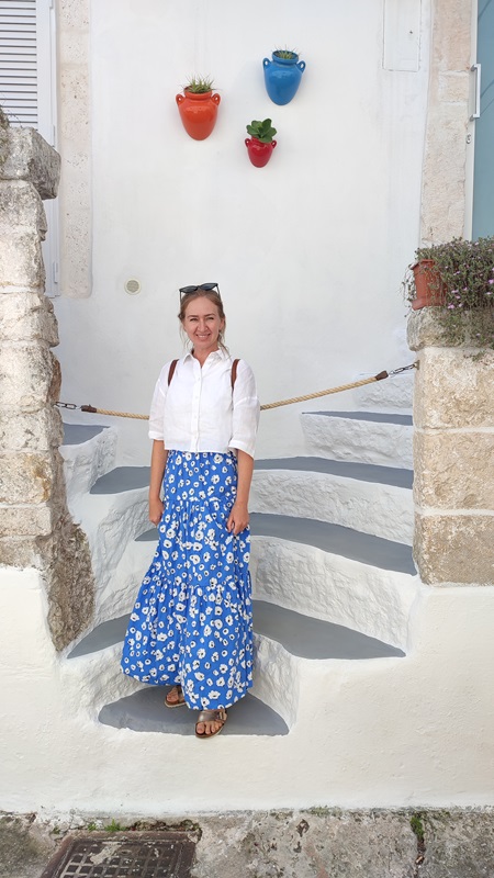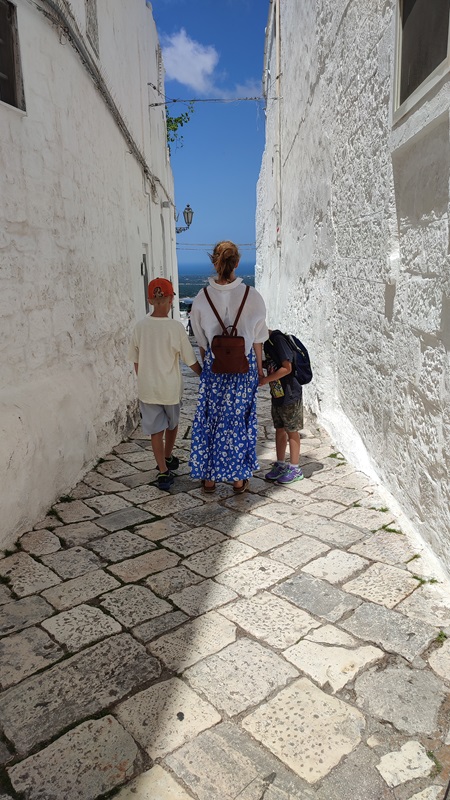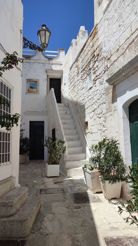 Ostuni, znane jako „Białe Miasto” (La Città Bianca), to jedno z najbardziej malowniczych miasteczek Apulii, położone na wzgórzu z widokiem na rozległe gaje oliwne i Adriatyk. Jego charakterystyczna biel, będąca wynikiem pokrycia budynków wapnem, sprawia, że miasto lśni w słońcu i emanuje niezwykłym urokiem. Zielone rośliny w donicach oraz kwitnące kwiaty pięknie kontrastują z tą bijącą bielą. Dreptając tymi urokliwymi uliczkami natrafiamy na intagramowe drzwi w kolorach morskim i zielonym, oceń sam/a - zdjęcia wychodzą boskie.