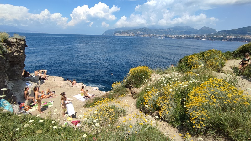 Widoki na Morze Tyrreńskie: Krystaliczne wody rozciągające się aż po wyspy Capri i Li Galli.